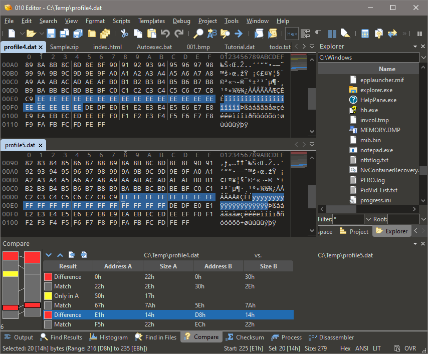 以下截图展示了 010 Editor 的部分强大功能。点击图片可查看高分辨率大图。