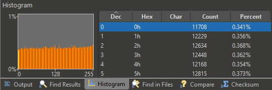 - 压缩文件通常具有平坦、参差不齐的直方图(如右图所示)